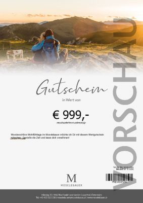 Ihr habt die freie Wahl mit einem Wertgutschein für unseren beiden Hotels Moselebauer und Marienhof! Einfach den gewünschten Betrag eingeben und den Wertgutschein mit Eurer persönlichen…
