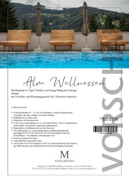 Ein Wochenende (3 Tage/2 Nächte von Freitag Mittag bis Sonntag Abend) für 2 Personen mit Verwöhn- und Erholungsgarantie inklusive: